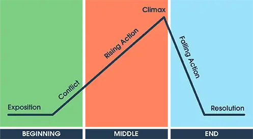 Once the storyteller introduces the conflict in a story, the tension slowly ratchets up through a sequence of subsequent scenes or episodes. This is the part of the story where the “plot thickens,” as they say. The storyteller develops the characters, while giving nuance and complexity to the conflict. The audience develops empathy with the characters, identifying personally with their struggle against the conflict. The storyteller keeps rolling out the plot, while maintaining enough mystery to keep the audience guessing and anticipating.